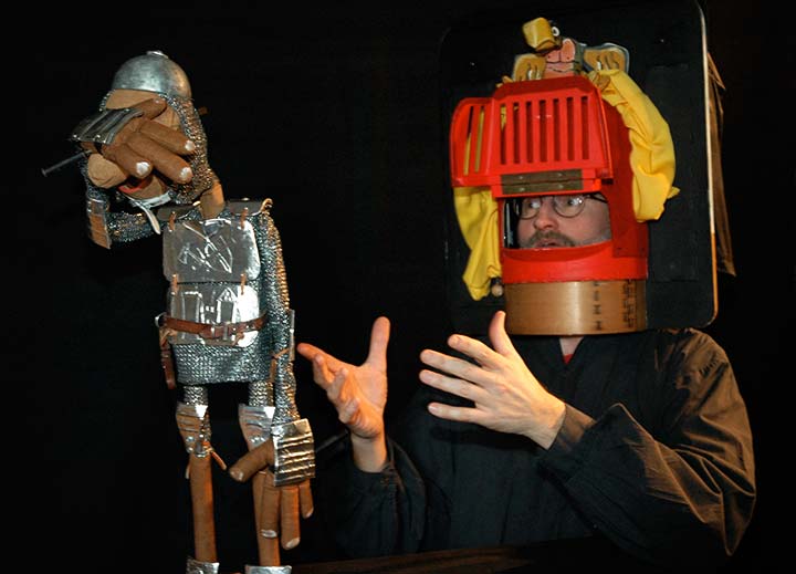 "Neben dem Theater mit Puppen beschäftige ich mich ebenso intensiv mit dem Bau derselben. So biete ich auch Workshops für Kinder und Erwachsene an. Außerdem fertige ich Puppen auf Bestellung und baue Karikaturen nach Photovorlagen."